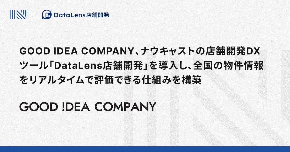 GOOD IDEA COMPANY、ナウキャストの店舗開発DXツール「DataLens店舗開発」を導入し、全国の物件情報をリアルタイムで評価できる仕組みを構築