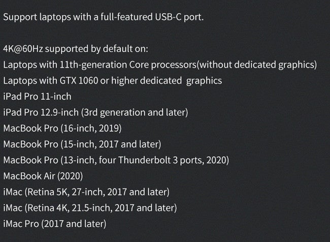 USB-Cポート搭載のデバイスは、Visual Dockでの動作に対応しています。お使いのデバイスが上記に記載されていない場合は、確認のためお問い合わせください。
