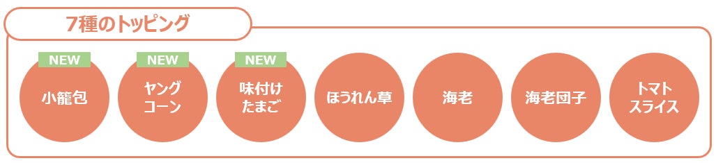 ヤングコーンや味付けたまごが新たに加わり、彩り豊かな7種のトッピングにバージョンアップ。