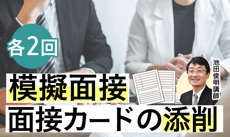 また、模擬面接・面接カードの添削は2回!講師のアドバイスをもとにブラッシュアップすることで、自信をもって面接に臨むことができます。