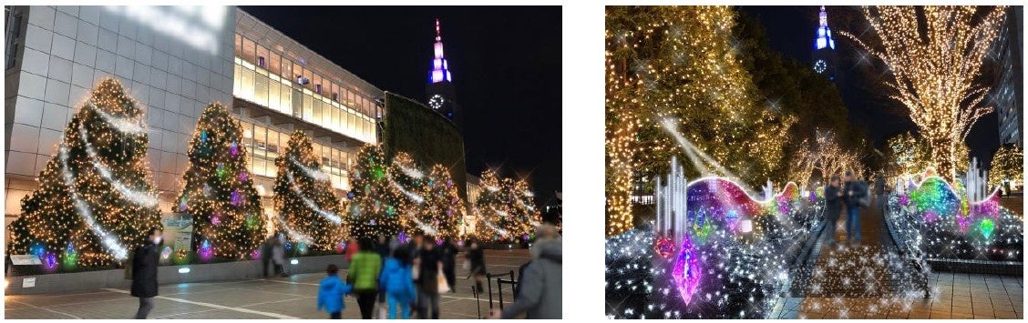 新宿サザンテラスでは「Twinkly Light System」を用い、輝くインタラクティブな体験型イルミネーションをお楽しみいただくことができます。また、新宿マインズタワーでは約2週間ごとに色が変わるツリー、タカシマヤ タイムズスクエアでは「Berryカラー」のベアやオーナメントが散りばめられたツリーが登場するなど、施設ごとに特色あるイルミネーションを展開し、新宿ミナミルミの「再開」と来街の皆様との「再会」の喜びを表現します。