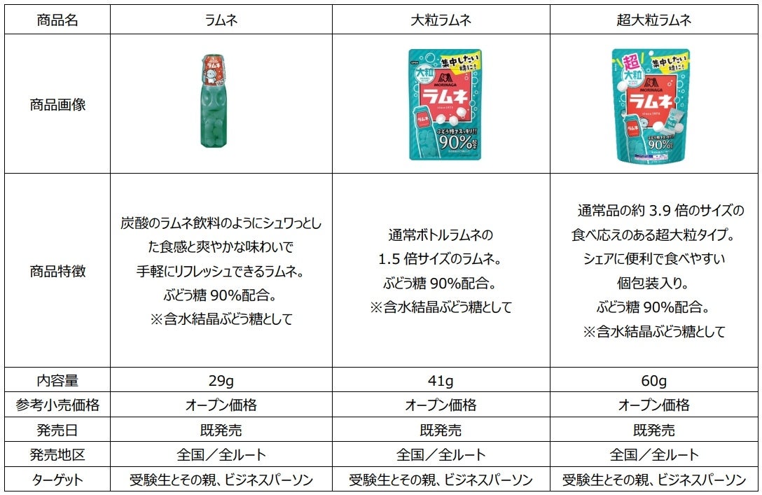 1973年に発売を開始したロングセラーブランド「森永ラムネ」は、ぶどう糖90%配合(※含水結晶ぶどう糖として)、おやつだけでなく仕事や勉強で集中したい時・リフレッシュしたい時等、幅広いシーンでお楽しみいただいています。