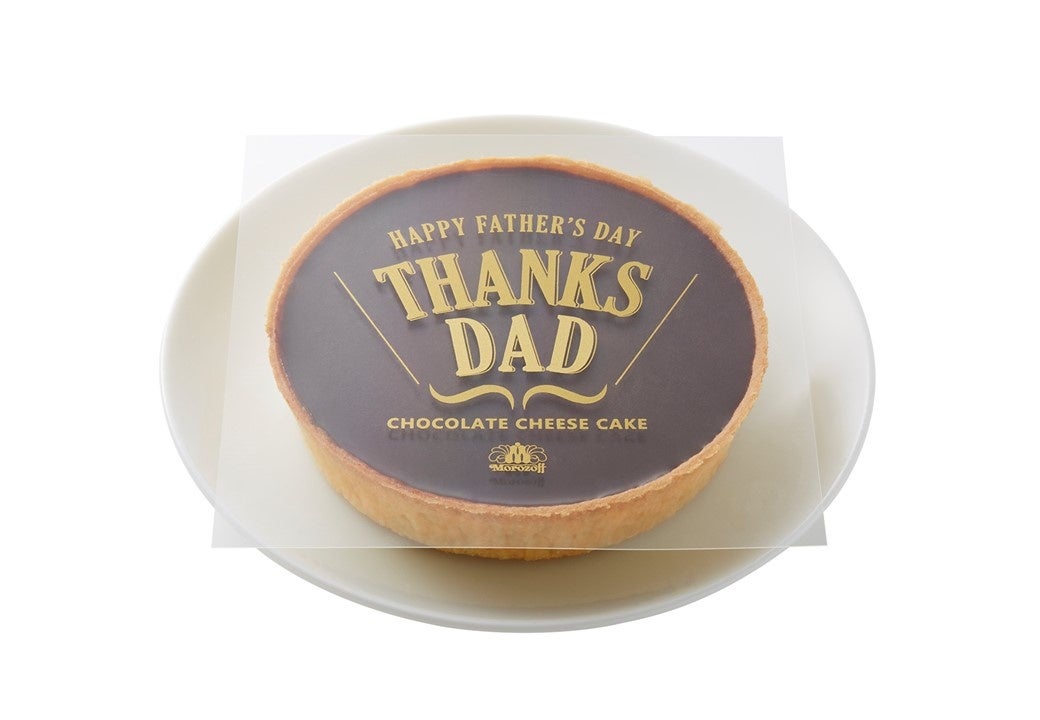 二層仕立ての贅沢なチョコレートチーズケーキ。クリームチーズをベースとした生地に、ココアパウダーでチョコレートの風味を加えて焼きあげ、天面にはチョコレートガナッシュを流しました。お父さんへの感謝のメッセージをのせたケーキはプレゼントにもぴったりです。