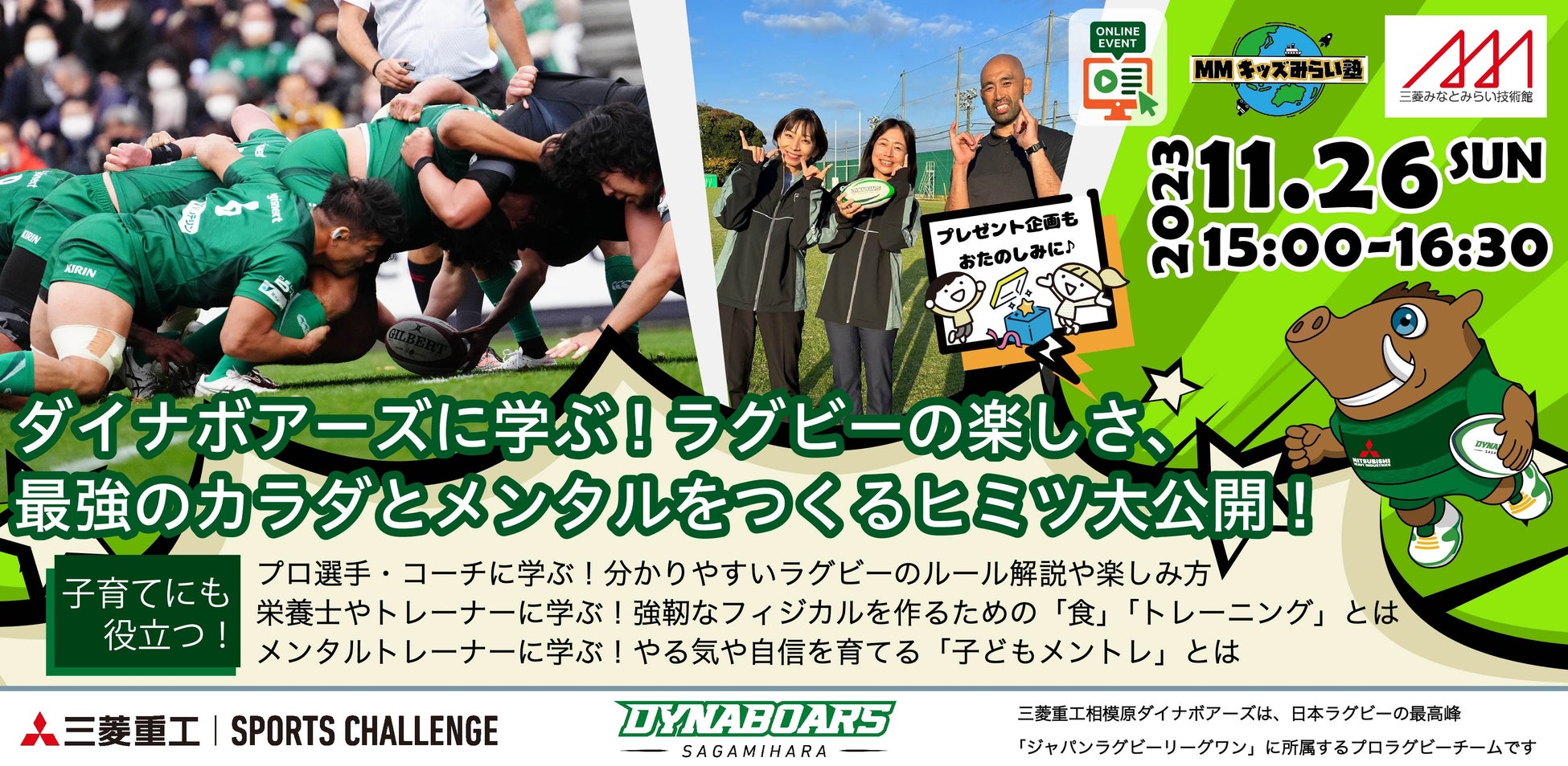 11/26(日) 三菱みなとみらい技術館「 MMキッズみらい塾 第16弾! 三菱重工スポーツチャレンジ紹介編 ダイナボアーズに学ぶ!ラグビーの楽しさ、最強のカラダとメンタルをつくるヒミツ大公開!」無料
