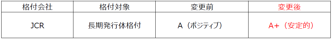 格付の変更(格上げ)に関するお知らせ