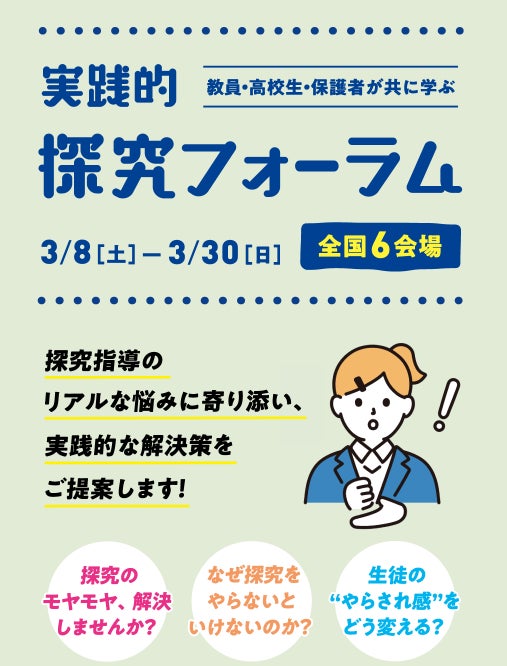 京都芸術大学プレゼンツ「実践的探究フォーラム」を全国6会場で開催!探究指導に関する教員のリアルな悩みに寄り添い、実践的な解決策をご提案します!【参加費無料】