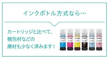 シリーズで初めてインクボトル方式を採用。カートリッジと比べて梱包箱などの廃材も少なく済むため環境負荷低減に貢献します。また、業務用ならではのインクエンドセンサーが付いており、失敗印刷を防ぎます。