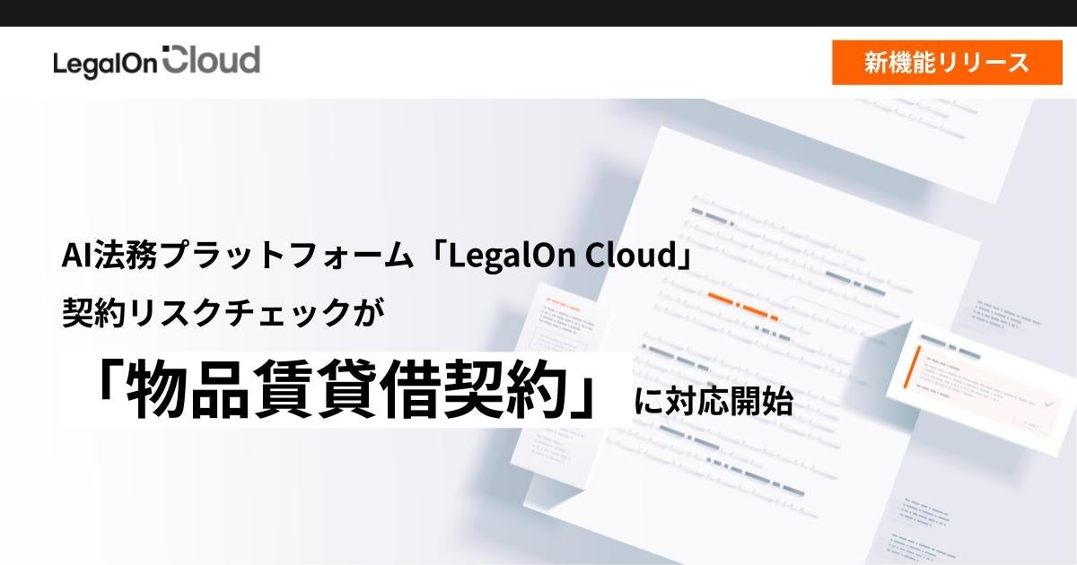 株式会社LegalOn Technologies(本社:東京都渋谷区 代表取締役 執行役員・CEO:角田 望)が提供する、AI法務プラットフォーム「LegalOn Cloud」( https://www.legalon-cloud.com/ )にて、契約リスクチェック機能が「物品賃貸借契約」に対応開始しました。これにより、物品賃貸借契約書の審査にかかる労力を軽減します。