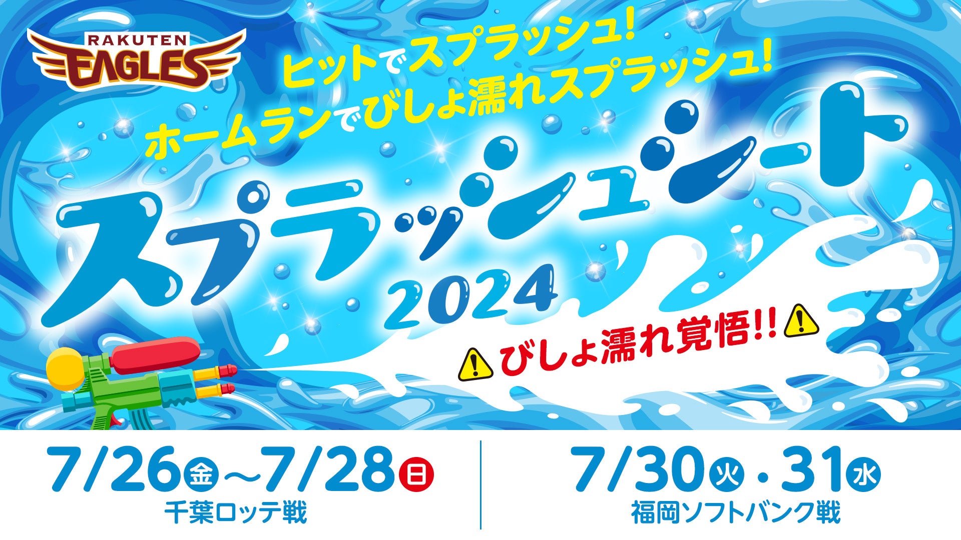 株式会社楽天野球団(本社:宮城県仙台市宮城野区、代表取締役社長:森井 誠之)は、7月26日(金)~31日(水)楽天モバイルパーク宮城で開催する一軍公式戦において、ヒットやチャンスのたびに水が大量に噴射される演出を楽しめるチケット「スプラッシュシート2024」を販売することとなりましたので、お知らせいたします。
