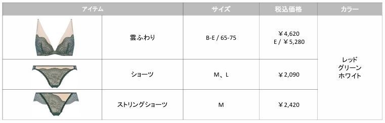 まるで雲のように軽くやわらかくバストを”ふわり”と包み込みながら、カップ下部の厚みでほどよくバストアップする「雲ふわりブラ」に、ホリデーシーズンにぴったりのカラー&デザインが登場します。コーディネートアイテムには、ストリングショーツもエントリー。華やかな気分に誘われて、きらめく街を駆け抜けたくなるような季節。軽く快適な着けごこちで、ドレスアップスタイルを思いっきり楽しんで!
