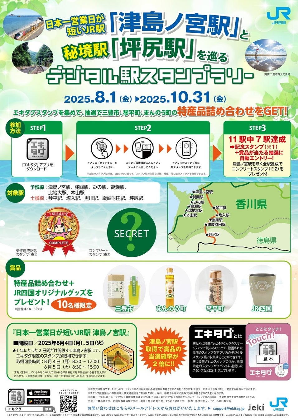 ◎2025年8月1日(金)よりJR四国と三豊市商工会が連携した「日本一営業日が短いJR駅『津島ノ宮駅』と秘境駅『坪尻駅』を巡るデジタル駅スタンプラリー」が開催されます。