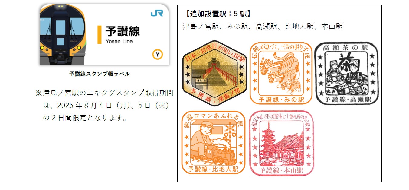 ◎株式会社ジェイアール東日本企画が提供する駅スタンプアプリ「エキタグ」では、2025年8月1日(金)よりJR四国の予讃線、土讃線のエキタグ導入駅が拡大します。