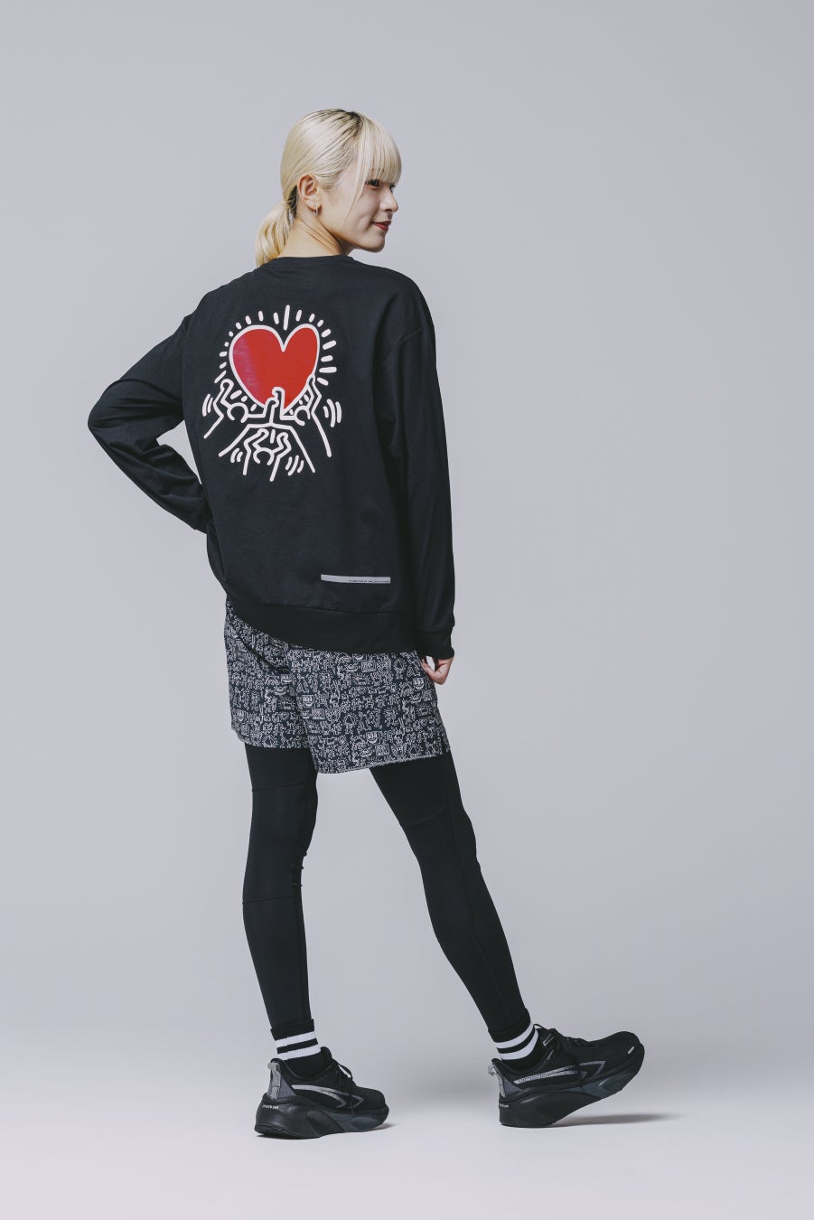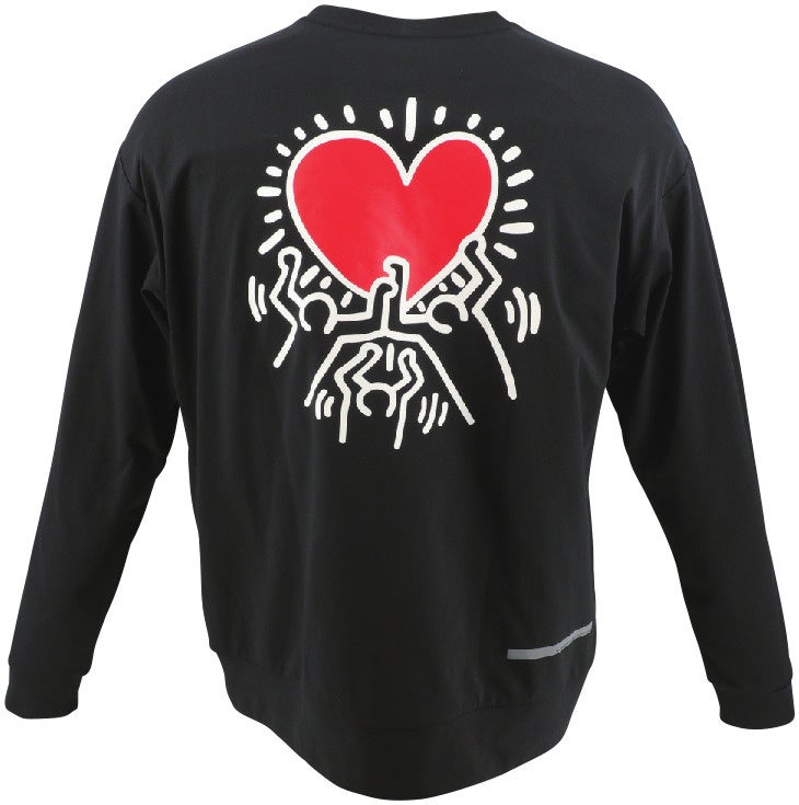 秋冬のレイヤリングにも対応できる設計で、春夏のコレクションから継続して販売されるアイテムもあ ります。キースヘリングのグラフィックを大胆にあしらったデザインは、ランニング時はもちろん秋冬のタウンユースとしても活躍します。
