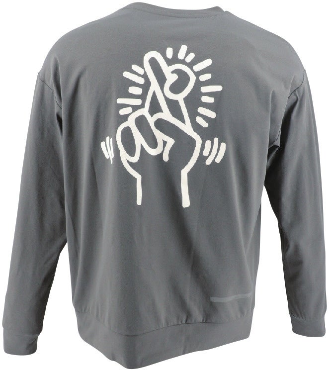 ストレッチ性に優れた動きやすい素材を採用したユニセックスのランニング長袖Tシャツ。アーティストKeith Haring(キース・ヘリング)とのコラボレーションコレクション。大胆なバックプリントと胸ポケットがデザインのアクセント。サイズは 2XLまで展開。