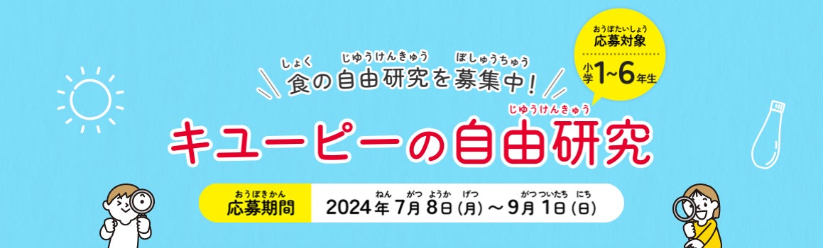 キユーピー株式会社(本社:東京都渋谷区、代表取締役 社長執行役員:髙宮 満、以下キユーピー)は、キユーピー公式サイト内の食育コンテンツ『食生活アカデミー』で7月8日(月)から、食に関する自由研究の募集を開始します。