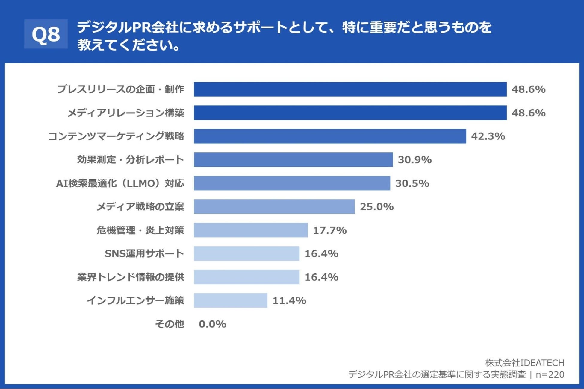 【調査結果】デジタルPR会社に求めるサポート、「プレスリリースの企画・制作」「メディアリレーション構築」が48.6%で同率1位