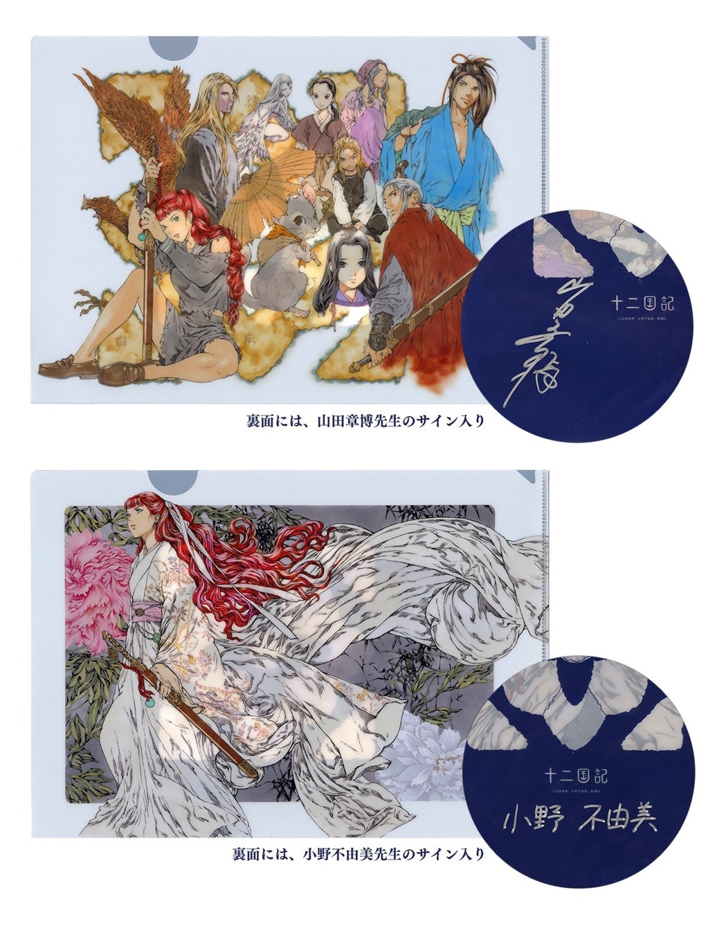 投票いただいた方の中から抽選で選ばれました12名様に小野不由美先生、山田章博先生の直筆サインの入った「十二国記クリアファイル」を2点セットでプレゼントいたします。到着を楽しみにお待ちください。(当選発表は発送をもってかえさせていただきます)