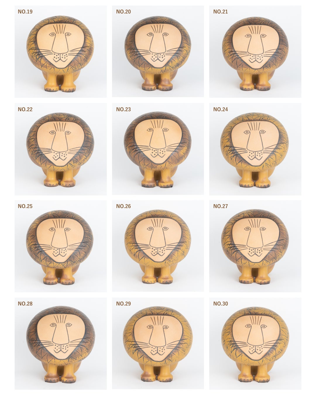 「ライオンマキシ」は、リサ・ラーソンの代表的なシリーズ「アフリカシリーズ」の中でも最大サイズを誇る人気作品です。ひとつひとつ異なる焼き色や表情、たたずまいが魅力の本作品は、これまでオンラインでは“おまかせ”でのお届けが主流でしたが、今回は12体それぞれの個性を写真でご紹介し、お客様にお好きな一体をお選びいただける仕組みとなっております。
