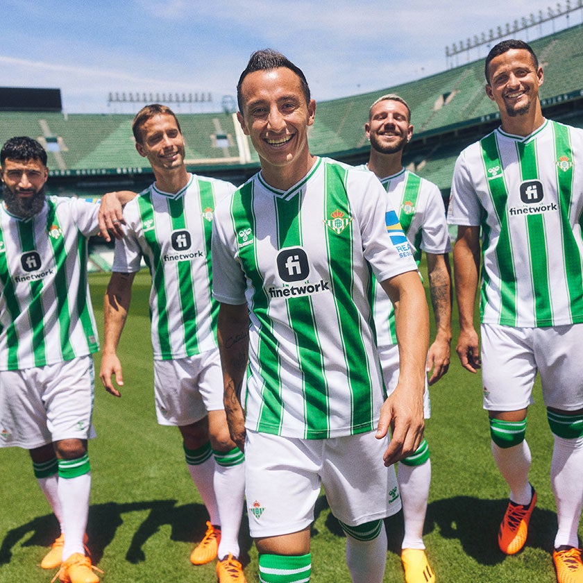 2022-23シーズンは、20チーム中6位でフィニッシュしたレアル・ベティス。新しいHOMEユニフォームは、伝統的なグリーンとホワイトのストライプデザインを継承。
