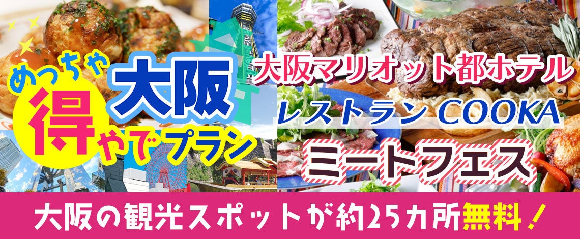 【大阪を楽しく観光できる方法お教えいたします!!】大阪市内25以上での無料スポットを楽しめて 新プラン登場!!大阪マリオット都ホテル レストランCOOKA ランチバイキング大阪楽遊プラン!!大阪市内25以上での無料スポットを楽しめて+大阪名物グルメがついた 大阪めっちゃ得やでプランを販売開始