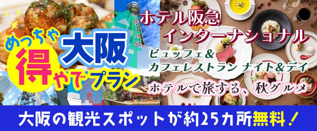 新プラン登場!!ホテル阪急インターナショナル レストラン ナイト&デイランチバイキング大阪楽遊プラン!!大阪市内25以上での無料スポットを楽しめて+グルメがついた 大阪めっちゃ得やでプランを販売開始。