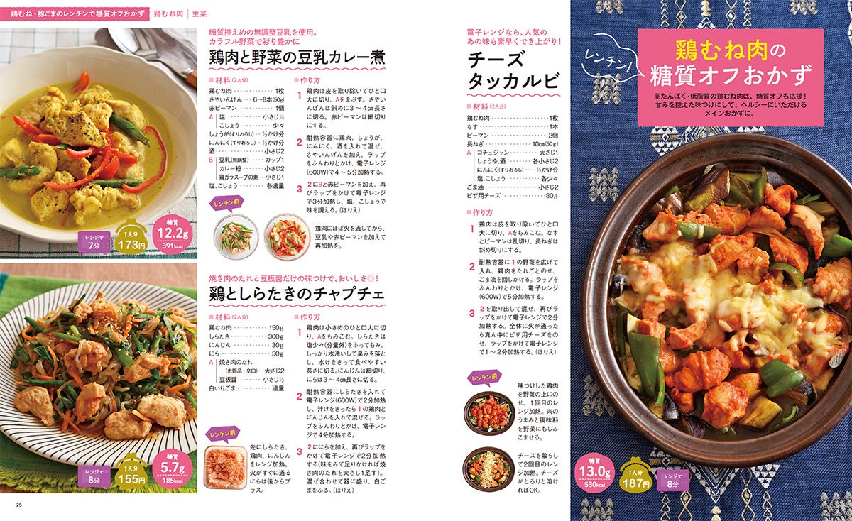 - 超時短!レンジ調理だから手間がかからずおいしく作れる糖質オフおかず