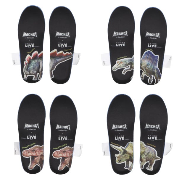 HAWKINSと『学研の図鑑 LIVE 恐竜』とのスペシャルコラボレーションは、2024年10月発売の「MACH DINO/マッハ ダイナソー」、2025年5月発売の「DINO SANDAL/ダイナソー サンダル」に続く第三弾。今回のスニーカーは、お子様のハードな動きにもしっかり対応するキッズスニーカー「マッハGT」シリーズと“恐竜図鑑”がタッグを組み、子ども心をくすぐる特別なデザインや仕掛けが満載の「MACH DINO/マッハ ダイナソー」から、機能はそのままに、デザインを新たにして登場。