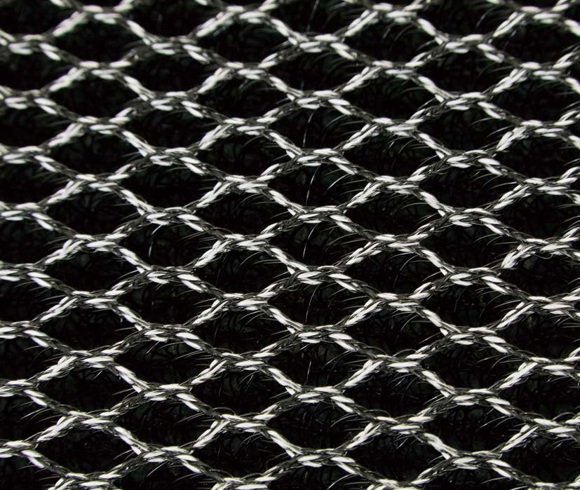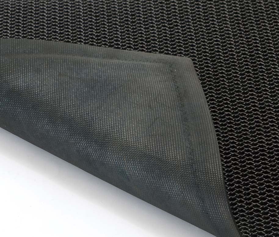 表面は特殊なトリプルメッシュ形状で高い除塵性を持ち、外出先から帰宅した際、靴底についた雪や泥をかき取ります。踏み心地はクッション性がある程よい弾力で、エントランスなどの屋外用マットとして適しています。