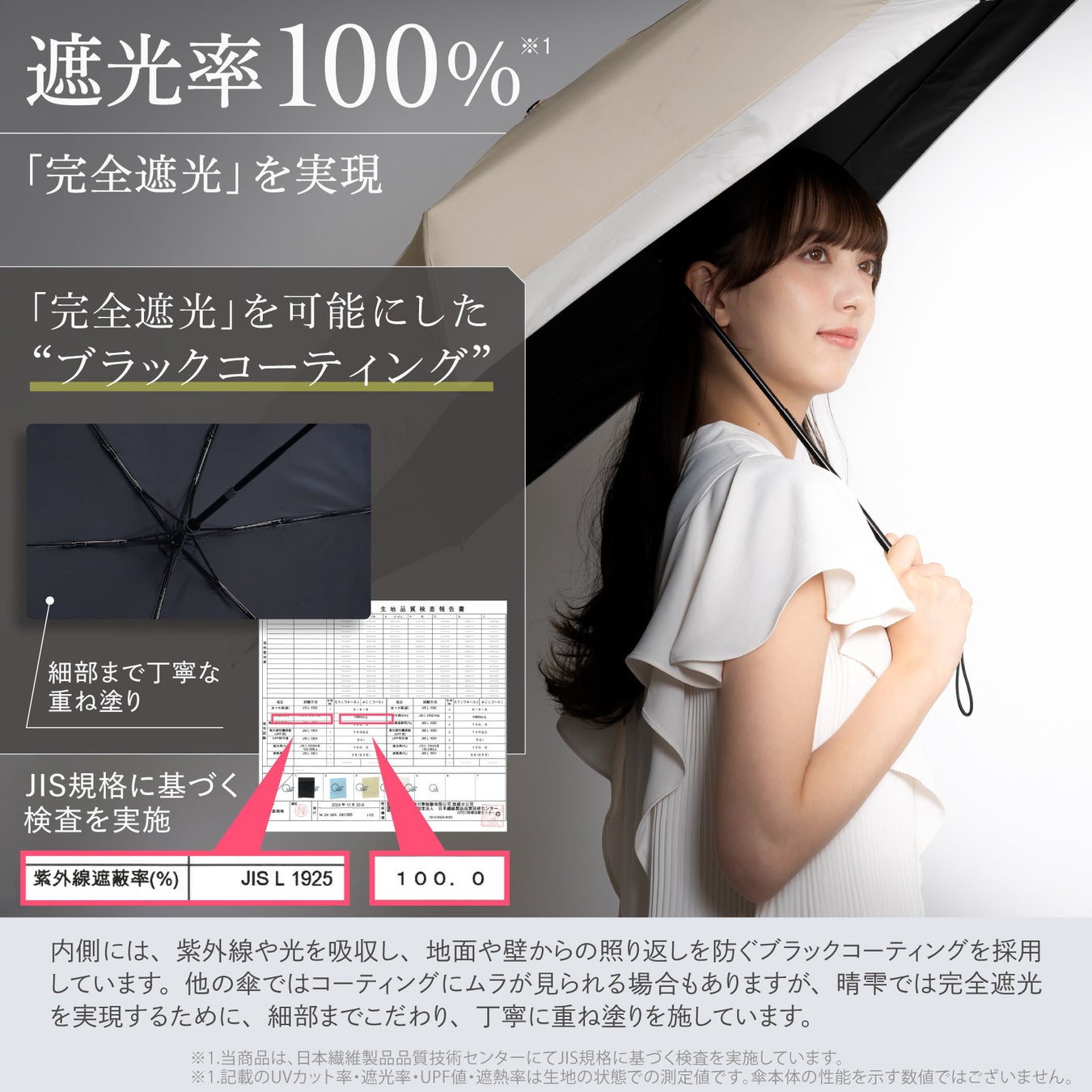 楽天市場晴雨兼用日傘カテゴリで1位を何度も獲得した実績があり、その品質と性能が証明されています。超軽量でありながら高機能を誇り、紫外線カット率100%、遮光率100%、UPF50+と、紫外線対策に最適な日傘です。