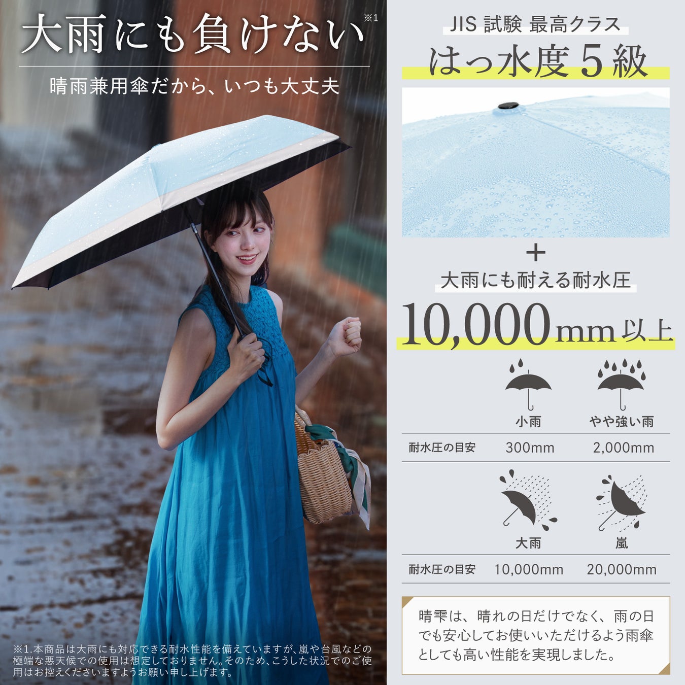 しっかりした雨対策:はっ水度5級で、強い雨にも対応でき、傘がしっかりと水を弾きます。