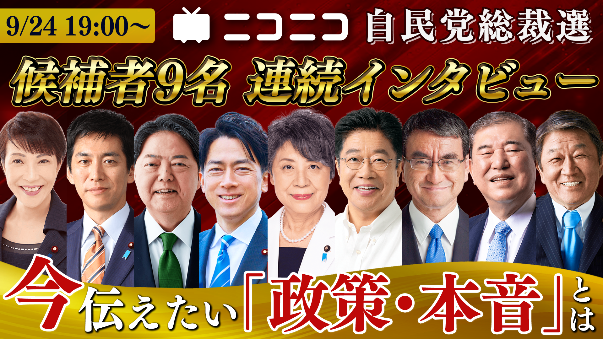 自由民主党 総裁選2024 候補者インタビュー 候補者9名が「政策・本音」を激白 ニコニコで生配信 <日時:2024年9月24日(火)19時00分~>