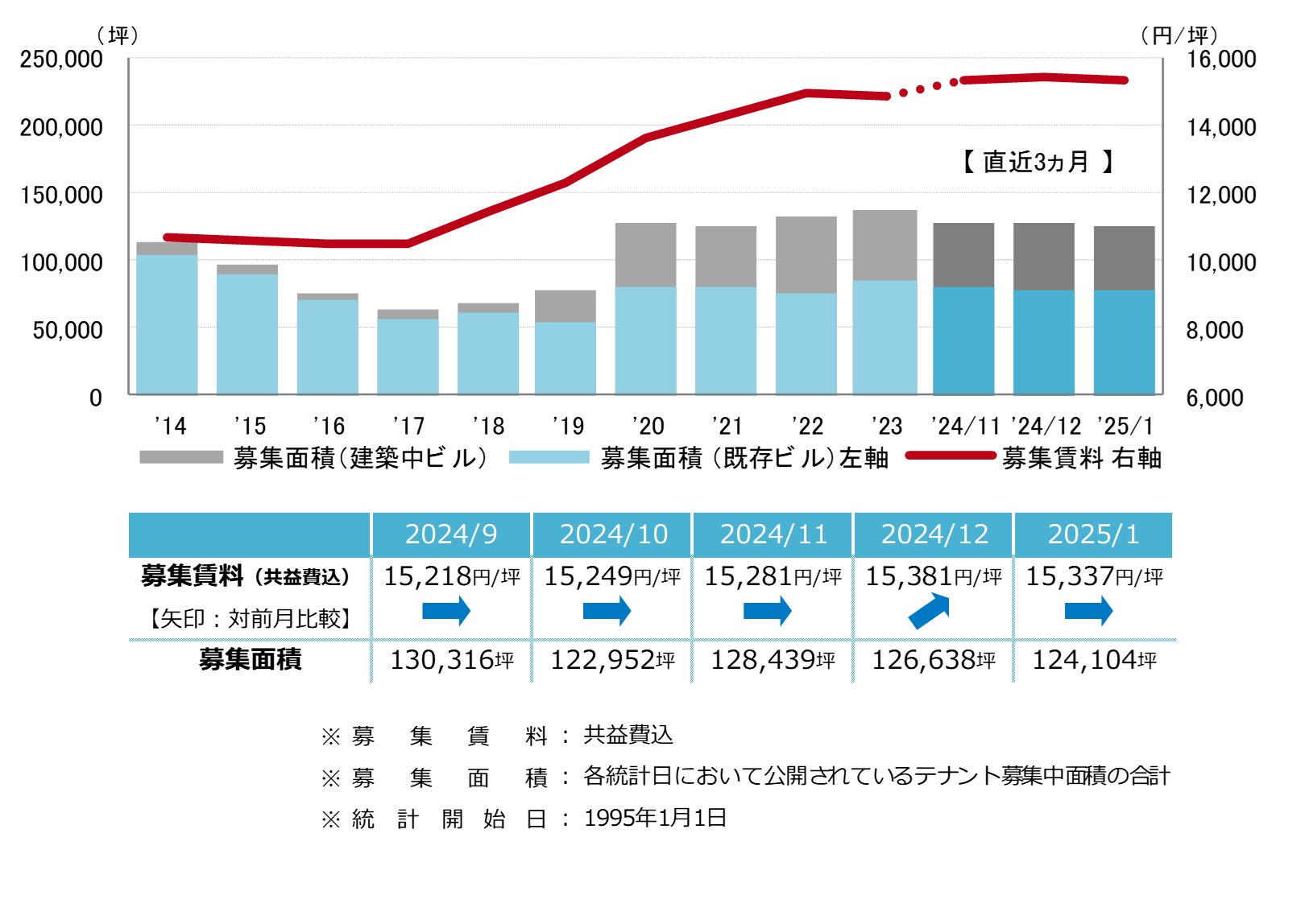 募集賃料 前月からわずかな動き 15,000円/坪台前半で推移