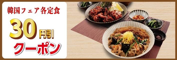 宮本むなし公式アプリでは、4月29日まで何度でも使える「韓国フェア定食 各種30円引きクーポン」を配信いたします。会員の方限定でご利用いただけるクーポンですので、この機会にぜひ宮本むなし公式アプリをダウンロード&会員登録ください。