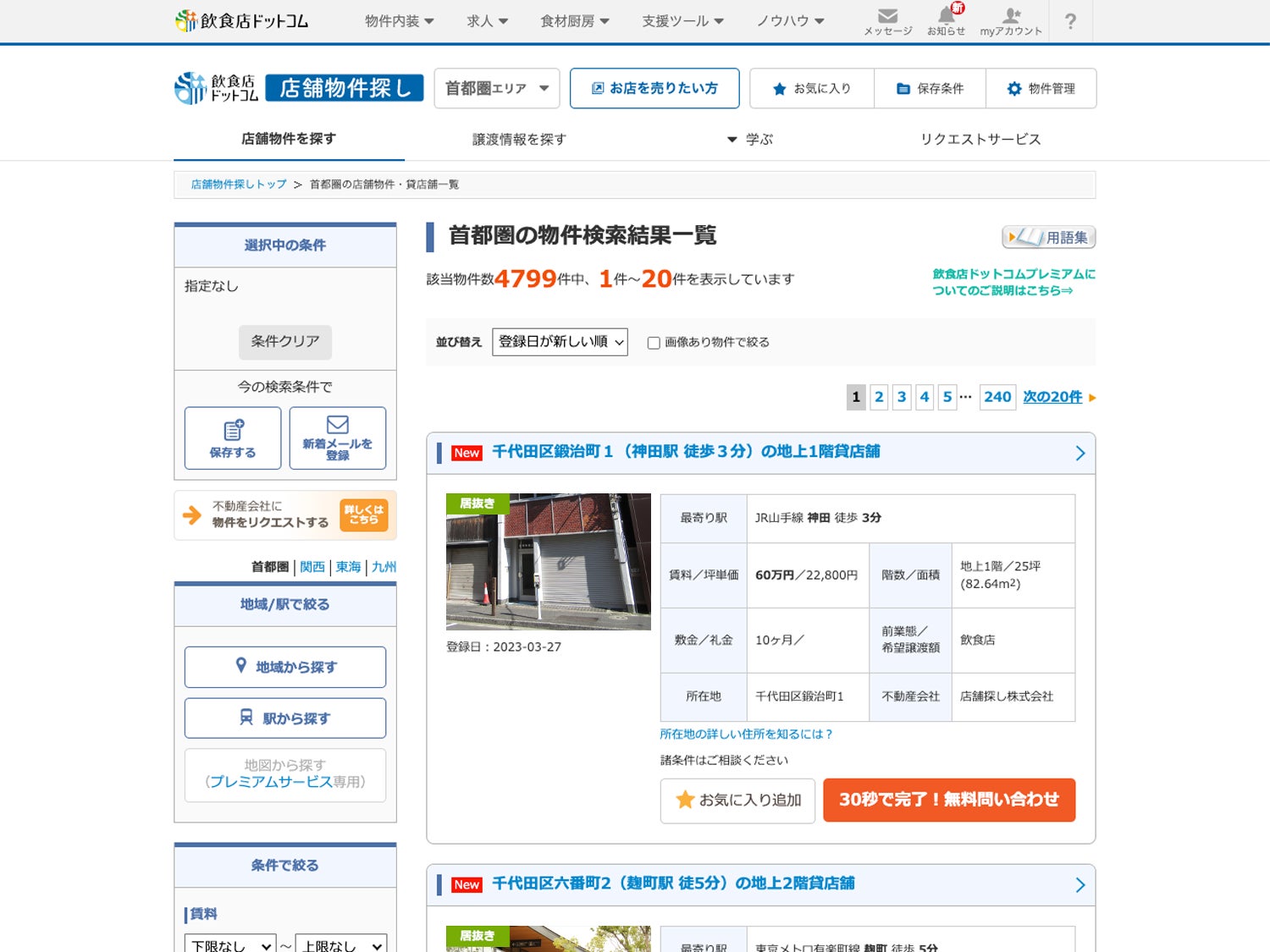 「飲食店ドットコム 店舗物件探し」、累計お問い合わせ数が100万件を突破