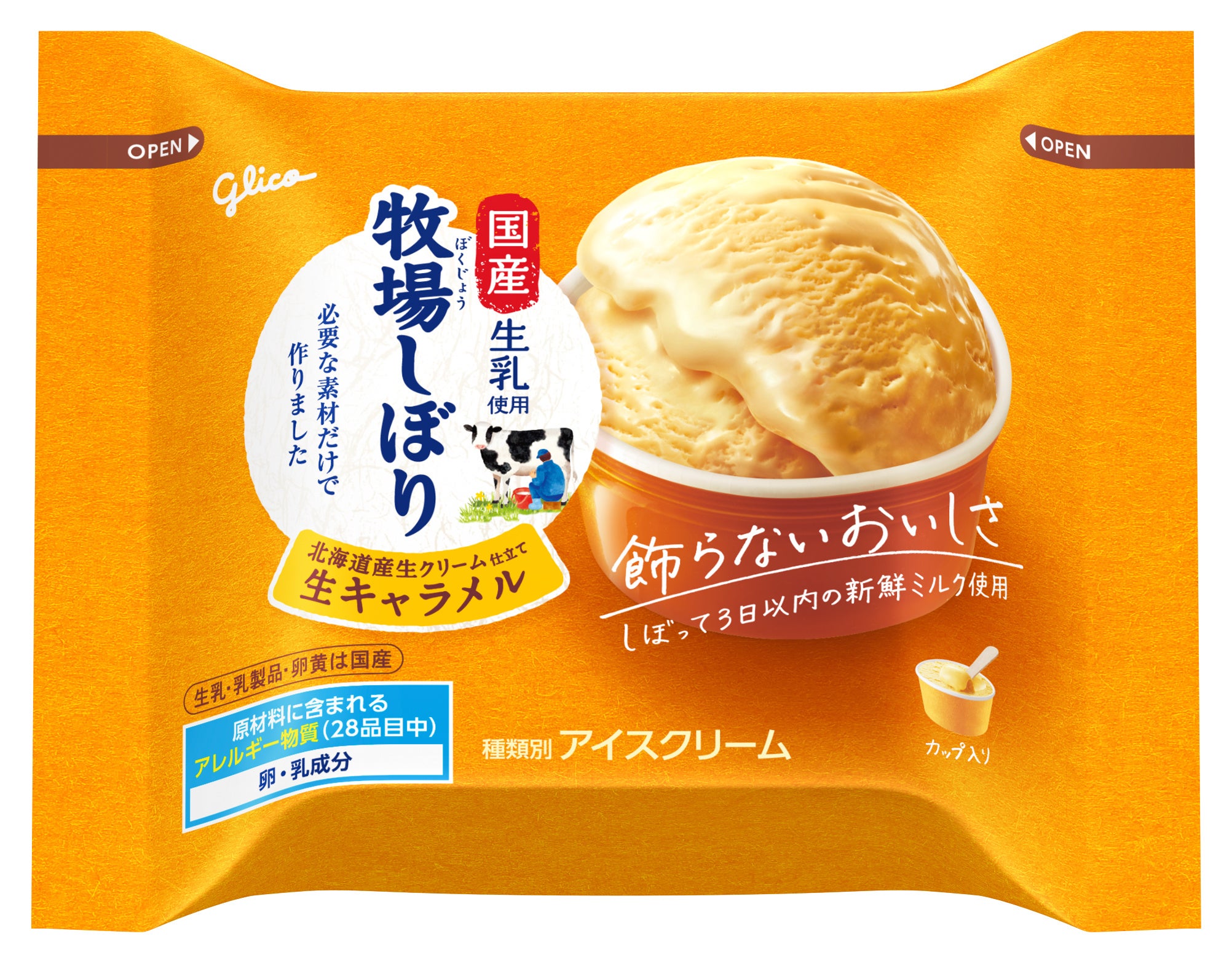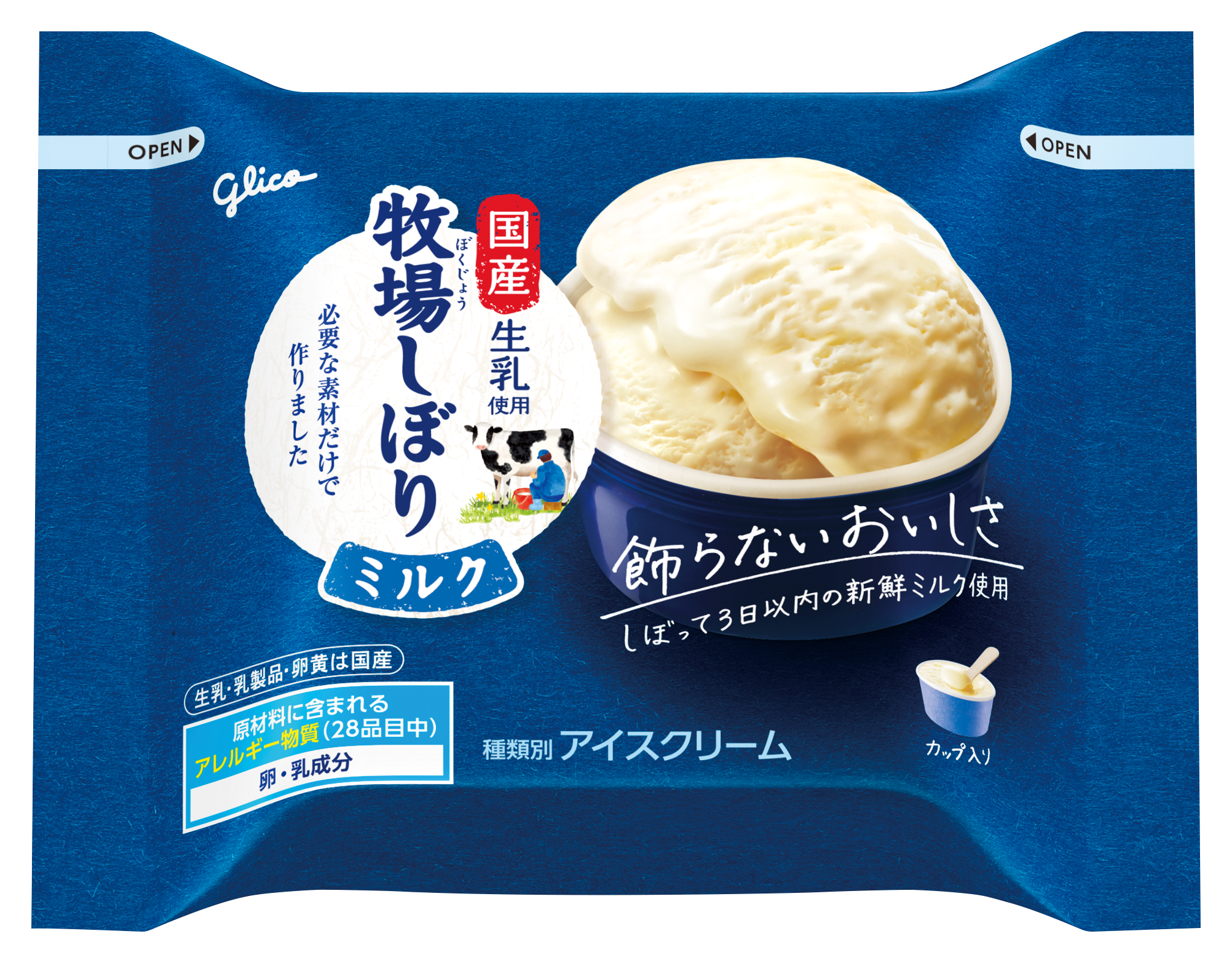 牧場で食べたあの味を届けたいという想いで誕生した「牧場しぼり」は、“しぼって3日以内”の国産「生ミルク」を使って作った「まっすぐ、澄んだ味がする」ミルクアイスです。