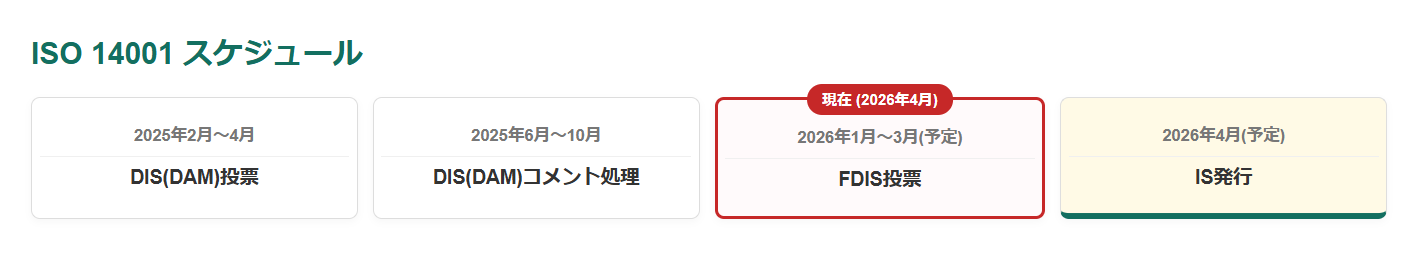 FDIS(最終国際規格案)は、発行前の最終段階の草案であり、2015年版からの主要な変更点(気候変動への配慮、外部環境の変化への対応など)をいち早く把握し、次期システムへの移行準備をスムーズに進めるために不可欠な資料です。