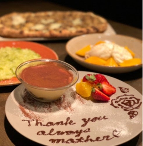 オービカでは、前菜からデザートに至るまで、丸ごとイタリアンを楽しめる母の日コース”Festa della Mamma”をご用意します。ウンブリア産トリュフを使ったピッツァ タルトゥーフォや牛リブロースのタリアータなど、オービカを代表する商品のラインナップです。食後には、創始者 シルヴィオ・ウルシー二のマンマによるレシピをアレンジした”トラディショナル ティラミス”をお楽しみいただけます。また、事前予約のお客様に限り、お母様へ感謝のメッセージを入れてご用意します。全7品を楽しめるボリューム感のあるコースです。