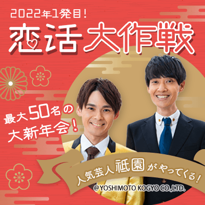 株式会社IBJ(代表取締役社長:石坂 茂、東証一部:6071)が運営する婚活パーティーサービスのPARTY☆PARTYは、2022年1月16日(日)14:00~『手品家 梅田店』を貸切り、吉本興業株式会社とコラボした婚活パーティー『大新年会』を開催。人気芸人『祇園』が登場し、会場を盛り上げます!