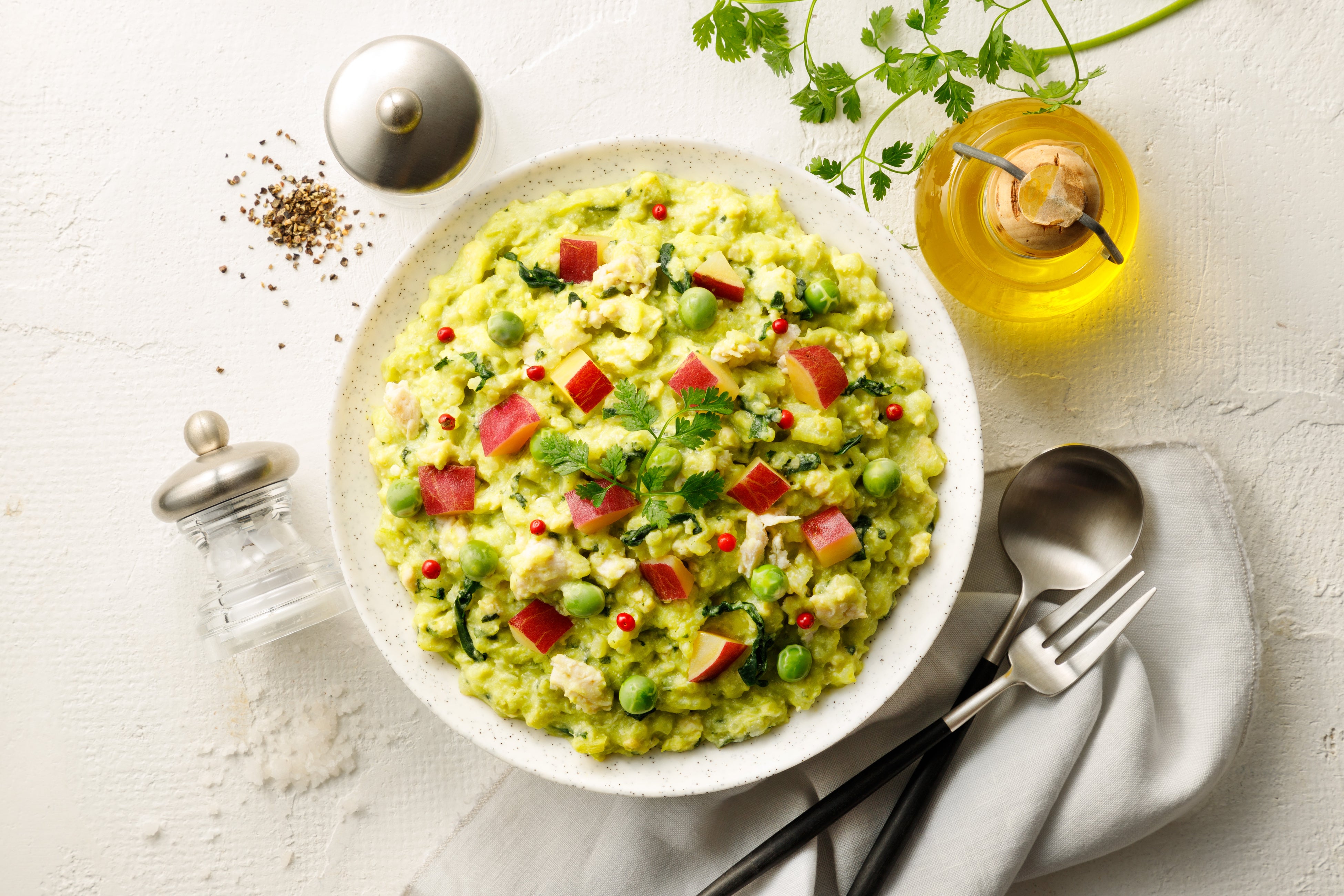 一緒に食べられる鶏肉とグリンピースの仲良しごはん