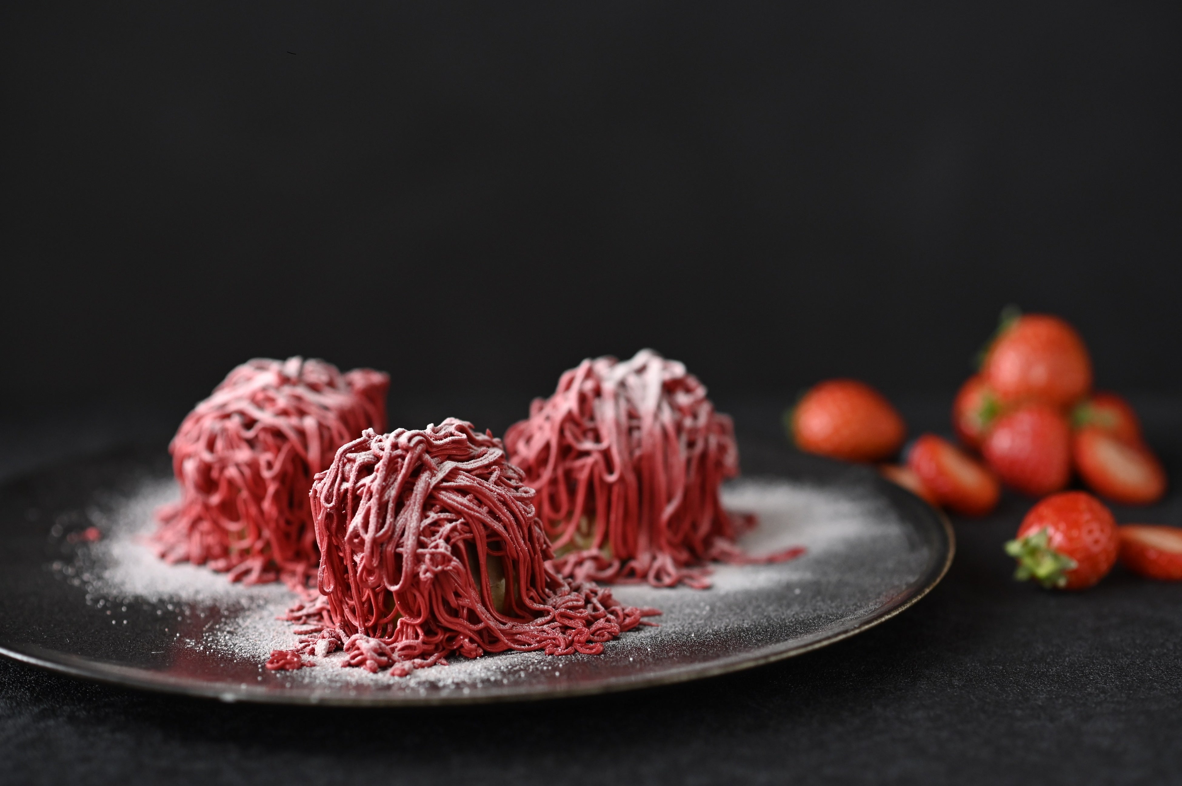 人気の高いモンブランに、苺バージョンが登場。パティシエがお客様の目の前でクリームをしぼり、最後の仕上げを行います。しぼりたてのクリームと苺の甘さがマッチした、注目のデザートです。