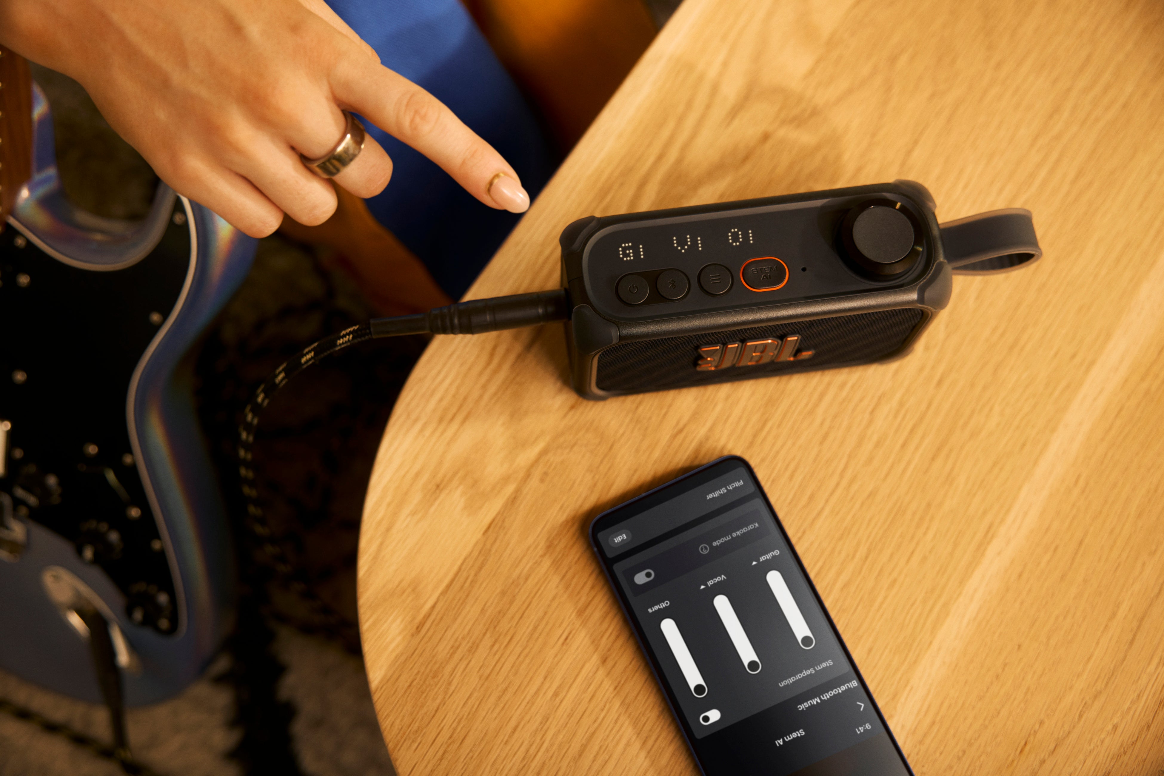 両モデルは「JBL One」アプリに対応しており、アンプシミュレーターやエフェクト、練習用ツールの設定までを一元的に管理できるため、演奏スタイルやシーンに応じた音作りをスムーズに行うことができ、また浮かんできたアイデアの録音からビルドアップ、そして毎日の練習までバリエーション豊かに楽しくなります。