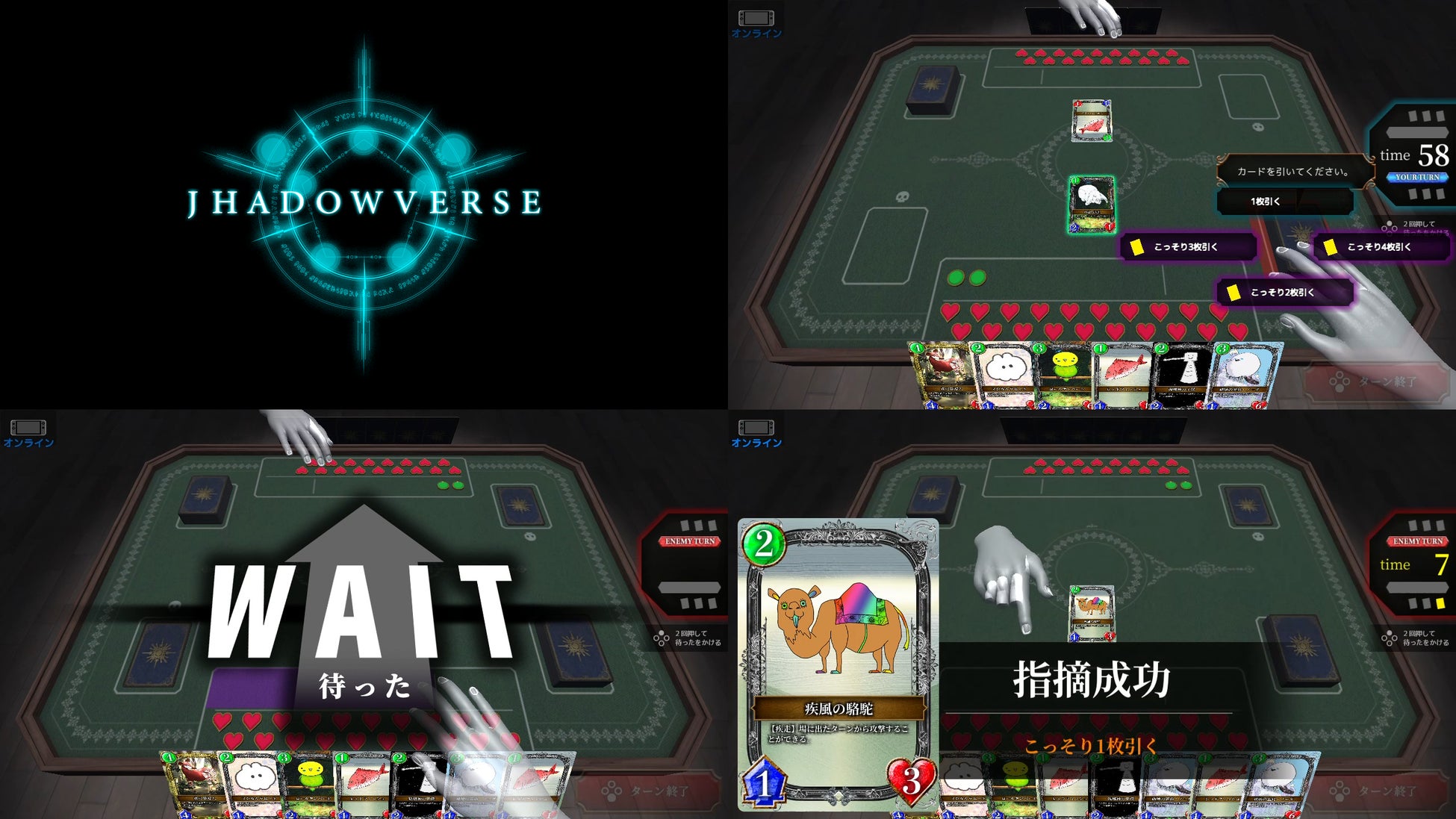 イカサマできるカードゲーム『邪道バース』です。Cygames社に出資をしてもらい、『シャドウバース』をパロディーにしました。「カードをこっそり2枚引く」「相手の体力を奪う」など、手を操作しながらバレずにイカサマを行います。イカサマを指摘されるとペナルティを受けます。