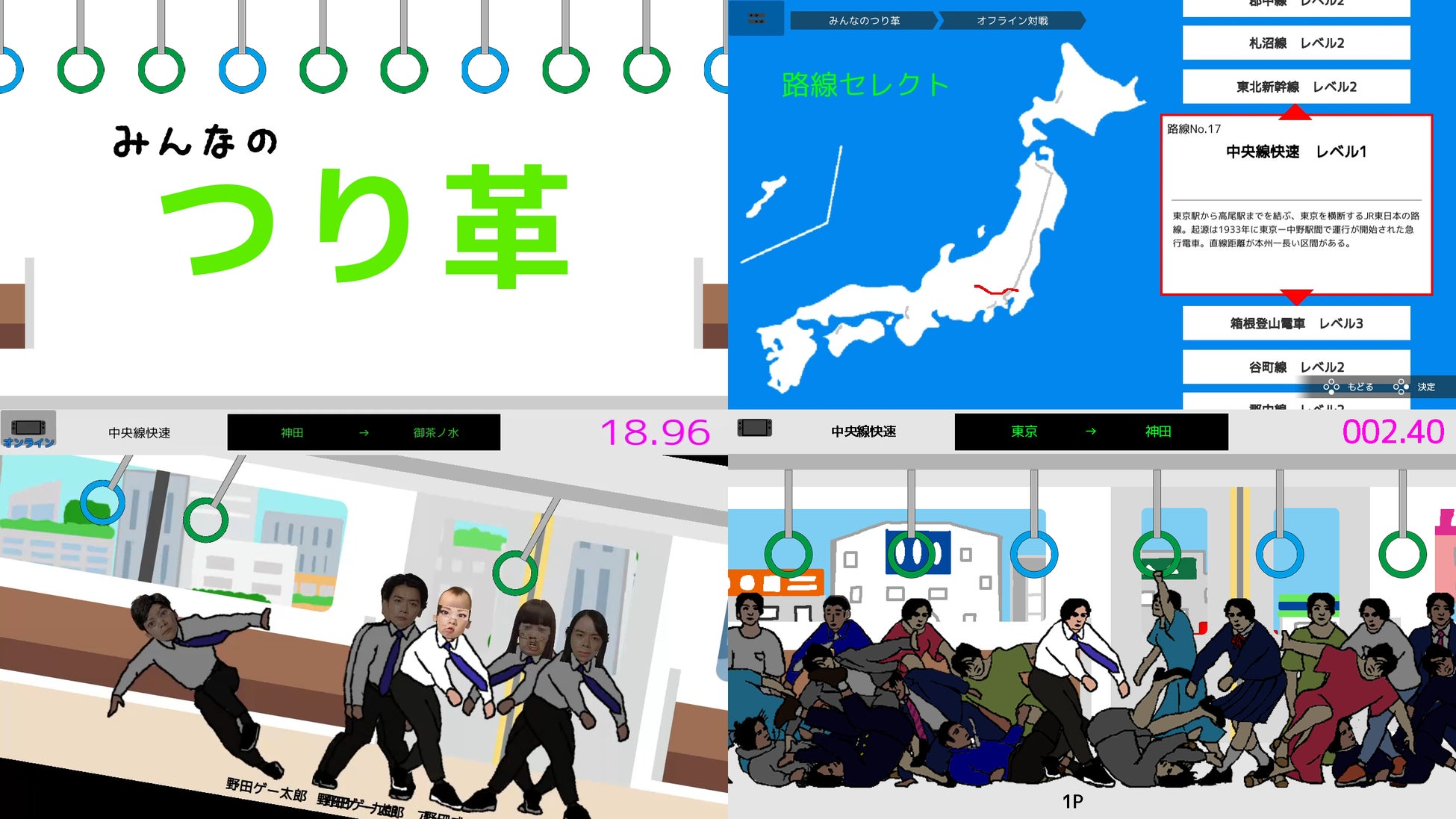 M-1グランプリで披露したネタ「つり革」がオンライン対戦に対応!最大20人で対戦プレイができます。トンネルや傾斜などの仕掛けも追加。今作では国内外の約40路線からステージ選択が可能です。