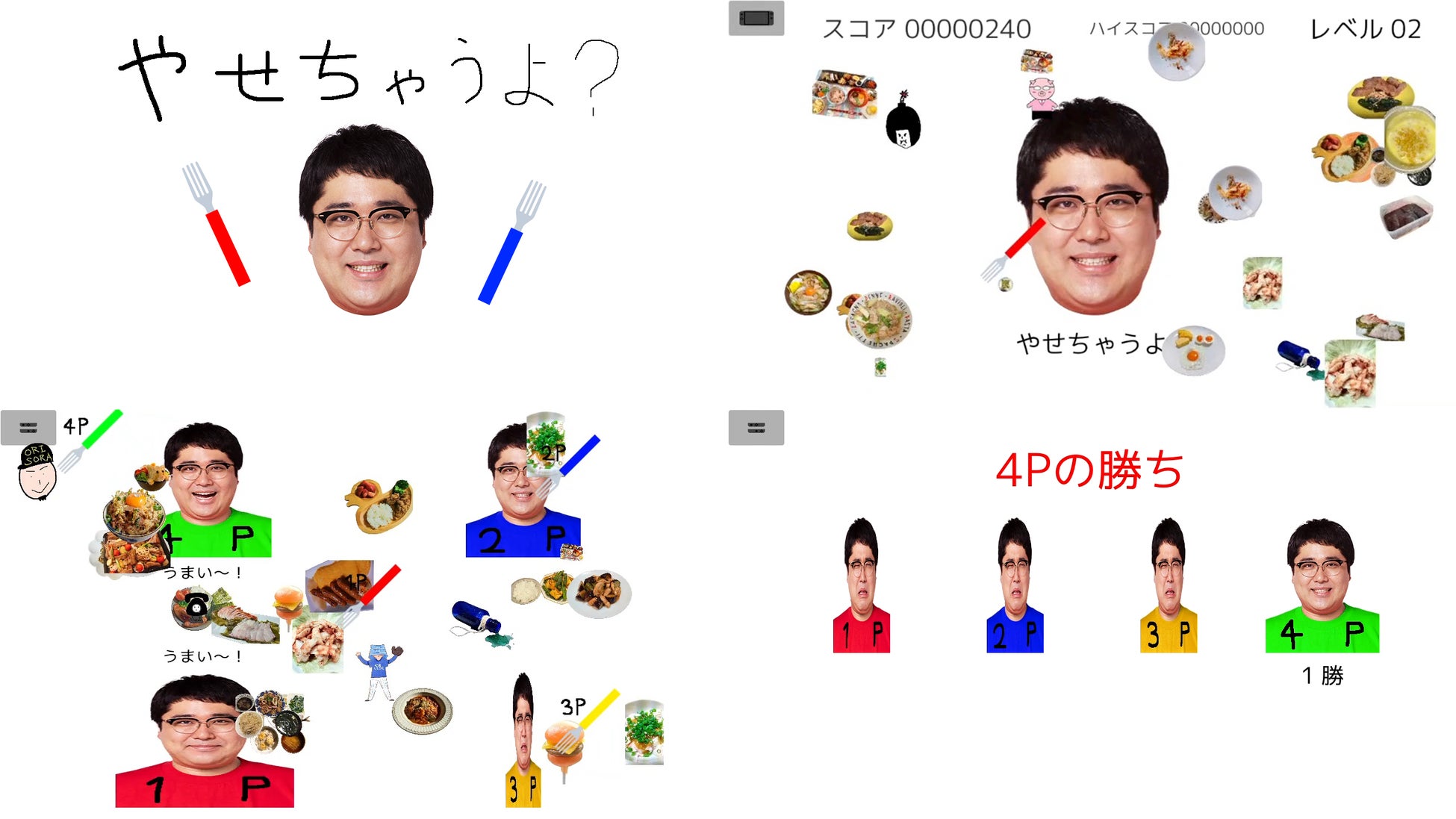 放っておくとどんどん痩せていく、マヂカルラブリー村上さんの口に、食べ物を運ぶゲーム。食べ物ではないものを食べさせると、更に痩せちゃうので、要注意です。