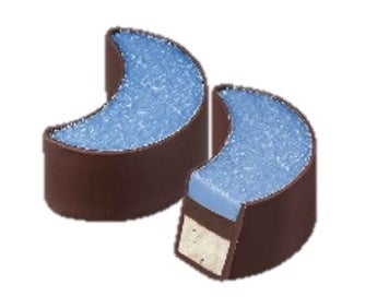 バニラ香るホワイトクッキークランブルムースに香ばしいアーモンドプラリネを重ね、月の形のダークチョコレートで包み込みました。