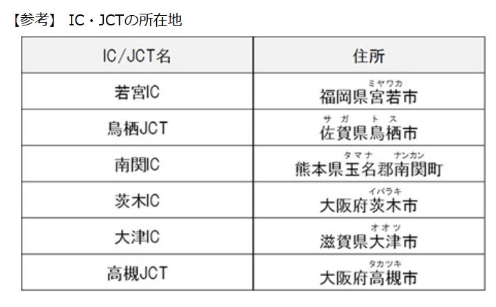※詳細な内容は、下記NEXCO西日本ウェブサイトをご確認ください。