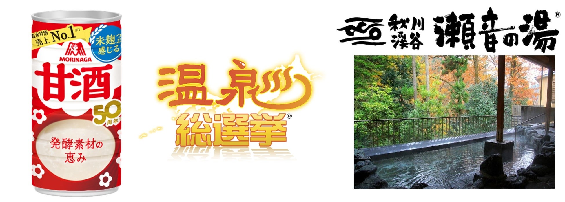 森永製菓株式会社(東京都港区芝浦、代表取締役社長・太田 栄二郎)は、5省庁(環境省、内閣府、総務省、経済産業省、観光庁)の後援で温泉地のランキング企画を実施している温泉総選挙(主催:旅して日本プロジェクト、運営事務局:(一社)ジャパンデザイン、本社:東京都渋谷区、温泉総選挙総合プロデューサー/社会起業家:山下 太郎)と、「温泉総選挙2024」で、美肌部門で関東エリア1位(全国2位)を獲得した東京都あきる野市にある“秋川渓谷瀬音の湯”において、受賞記念として、甘酒の日である大寒(今年は1月20日(月))から、“糖質”と“水分”補給が同時にできる「森永甘酒」をウェルカムドリンクとして、施設をご利用の皆様に合計3000本配布いたします。当日は、あきる野市のゆるキャラ「森っこサンちゃん」も応援に駆け付け、施設をご利用の皆様に「森永甘酒」を配布いたします。