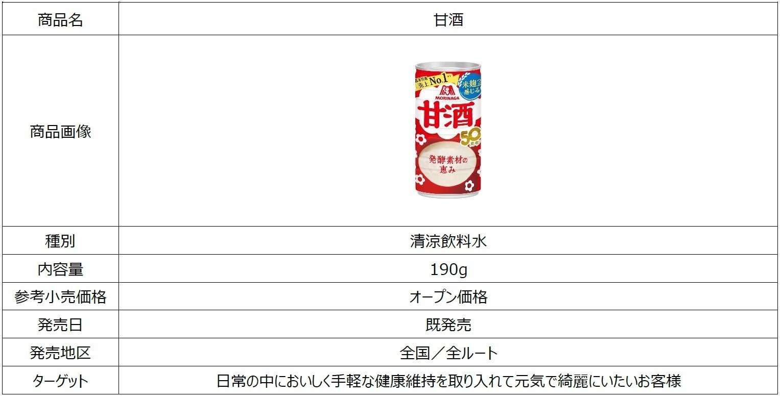 森永製菓は、1969年に瓶入り、1974年10月に缶入りの「森永甘酒」を発売。現在、おかげさまで甘酒市場売上No.1※。古くは1300年前から飲用されてきた日本の伝統飲料である“甘酒”が、皆様の暮らしにおいて“より身近な飲み物”となるよう、様々な形態や味わいの甘酒の発売、甘酒の健康価値の研究などにより甘酒需要の拡大に取り組んでまいりました。コーポレートメッセージ「おいしく、たのしく、すこやかに」のもと、森永製菓はこれからも甘酒のおいしさや健康価値を探求し、お客様のウェルネスライフをサポートしてまいります。