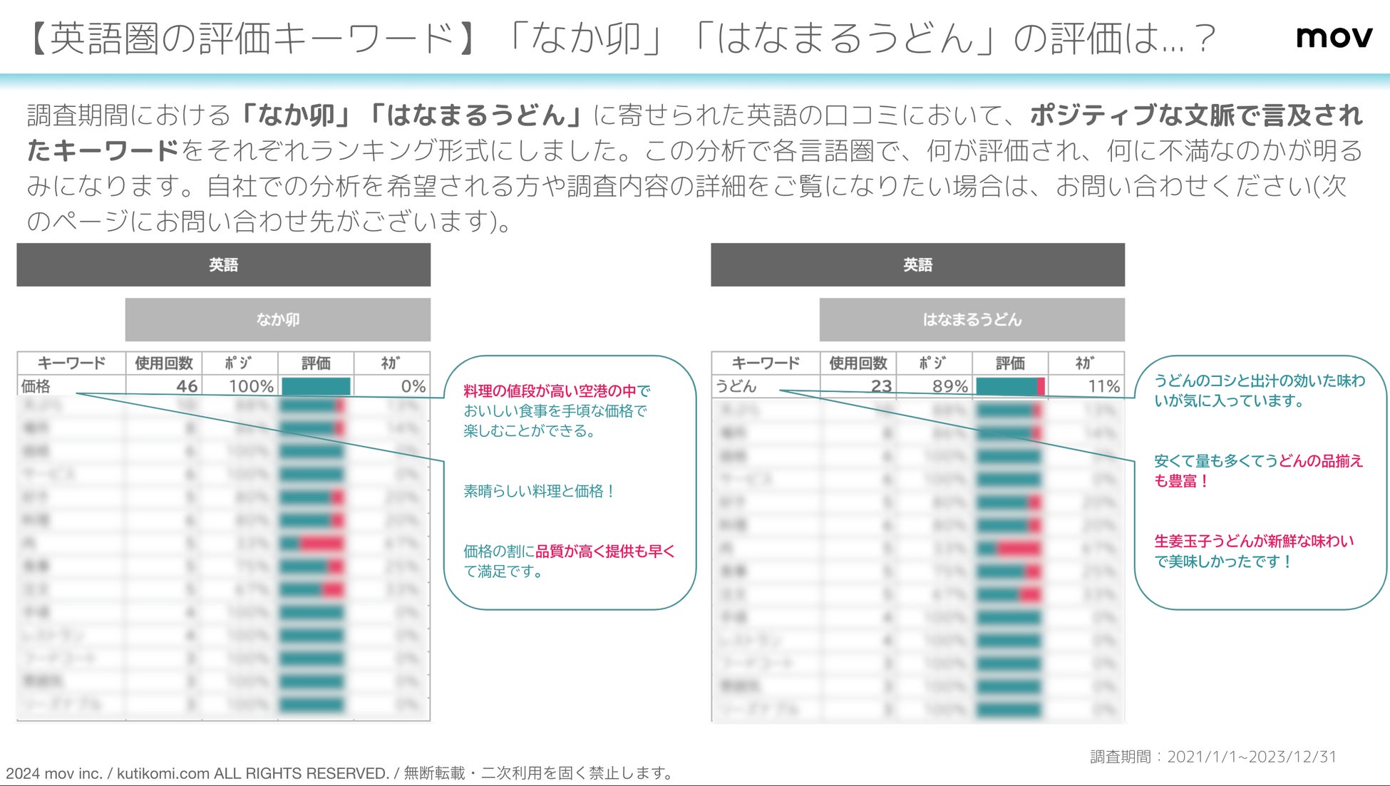 ※口コミ分析対象期間:2023年1月1日〜2023年12月31日