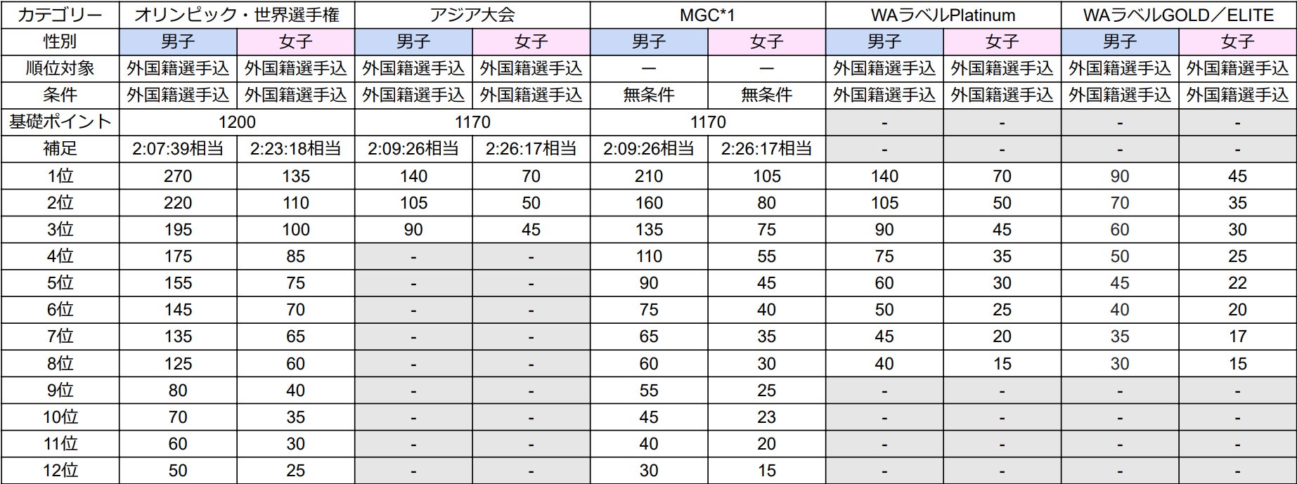 ・日本代表派遣大会のうち4大会は、記録ポイントとして基礎ポイントを付与する。